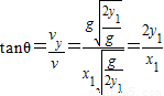 物体做平抛运动的轨迹如图所示,O为抛出点,物体经过点P(x1,y2)时的速度方向与水平方向的夹角为θ,则( )