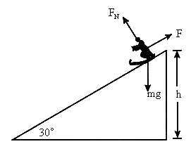 一位质量m=60kg的滑雪运动员从高h=10m的斜坡自由下滑.如果运动员在下滑过程中所受到的阻力F=50N,斜坡的倾角θ=30°,运动员滑至坡底的过程中,所受的几个力所做的功各是多少?这些力所做的总功是多少?