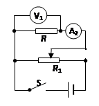 比较合适;待测电阻阻值和电流表比较接近,所以电流表外接;本实验要求多测几组数据,所以采用分压电路,电路图如下![]()