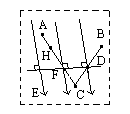 如图所示,虚线方框内有一匀强电场,A、B、C为该电场中的三个点,已知φA=12V,φB=6V,φC=0V,试在该方框中作出该电场示意图(即画出几条电场线)。若将一个电子从A点移到B点,电场力作功为 eV。