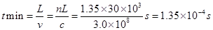A t的最小值是1.35×10-4s B t的最大值是1.5×10-4s