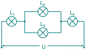 有四盏灯,接入如图电路中,L1和L2都标有“220V,100W”字样,L3和L4都标有“220V,40W”字样,把电路接通后,最暗的灯将是 ( )![]()