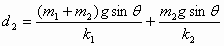 (1)用力沿斜面向上缓慢推动m2,当两弹簧的总长度等于两弹簧原长之和时,m1、m2各上移的距离d1、d2.