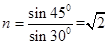光由空气以45°的入射角射向介质时,折射角是30°,则光由介质射向空气的临界角是____。
