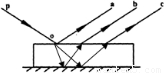 【答案】分析:由两种单色光混合而成的很细的复色光沿PO方向射到上、下表面平行的厚玻璃平面镜的上表面,a为反射光,仍然为复色光,在上表面上发生折射,不同的色光折射率不同,分成两束光在下表面反射到上表面,再次折射出去.根据光的偏折程度,比较两种色光的折射率大小,根据v=得知两种色光在介质中传播速度的大小.