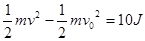 质量为1kg的滑块,以4m/s的速度在光滑的水平面上向右滑行,从某一时刻起在滑块上施加一个水平向左的2N的作用力,经过一段时间后,滑块的速度方向变为向左,大小变为6m/s,在这段时间内水平力对滑块所做的功为