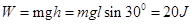 质量为2kg的物体沿倾角为300的斜面由静止开始下滑,1秒内下滑了2m,则其重力势能改变了__ __ __J,1秒末重力的瞬时功率为___ ___w。