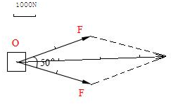 如图所示,物体受到大小相等的两个拉力作用,每个拉力都是2000N,夹角是50°,求这两个力的合力.(要求用作图法和计算法分别求解.)?