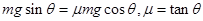 沿斜面方向、垂直斜面方向建x 、y坐标,可得: