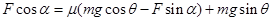 ,在水平面上保持静止,当将一质量为m的木块放在斜面上时正好匀速下滑,若用与斜面成a角的力F拉着木块匀速上升,如图。