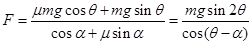 求:(1)当角a为多少时,拉力F最小值,并求出这个最小值?
