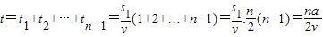 一列火车共有n节车厢且均停在光滑的长直轨道上,各车厢间距相等,间距总长为a.若第一节车厢以速度v向第二节车厢运动,碰撞时间极短且碰后不分开,然后一起向第三节车厢运动,……依次直到第n节车厢.试求: