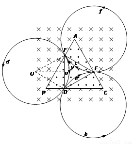 £¨2£©Á¬½ÓD¡¢E¡¢F£¬¿ÉµÃDDEFÊǵȱßÈý½ÇÐΣ¬µ±Àë×ÓÑØÐDFEµÄ½ÇƽÏß·½ÏòÉäÈëʱ, Àë×Ó²ÅÄÜÒÀ´Î¾¹ýDµã¡¢Eµã£¬ÆäÔ˶¯µÄ¸÷¶Î¹ì¼£ÒÀ´ÎÊÇa¡¢b¡¢c¡¢d¡¢e¡¢f.»Øµ½Fµã, Íê³ÉÒ»¸öÖÜÆÚÔ˶¯, ÈçÓÒÏÂͼËùʾ.
