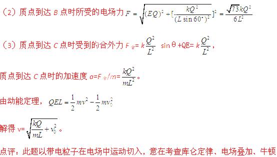 (2)给A处的质点一个指向C点的初速度,该质点到达B点时所受的电场力多大?