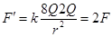 可视为点电荷的A、B两球相距一段距离,带电量分别为+4Q和+2Q,此时相互间库仑力为F。现让A球电量变为+8Q,其他条件不变,则相互间库仑力大小变为( )