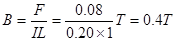 一根长为0.20m的直导线,垂直于某匀强磁场方向放置,当导线中通有1A的电流时,导线受到的安培力大小为0.08N,则: