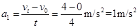 质量为2kg的木箱,静止在水平地面上,在水平恒力F作用下运动4s后它的速度达到4 m/s,此时将力F撤去,又经过8s物体停止运动,若地面与木箱之间的滑动摩擦因数恒定,求:![]()