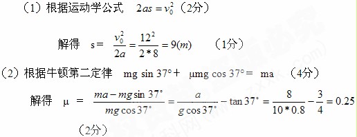 如图,足够长的斜面倾角θ=37°,一物体以v0=12m/s的初速度,从斜面A点沿斜面向上运动,加速度大小为a=8.0m/s2.已知重力加速度g=10m/s2,sin 37°= 0.6,cos 37°= 0.8.求: