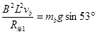 如图所示,两根足够长且平行的光滑金属导轨与水平面成53°固定放置,导轨间连接一阻值为4Ω的电阻R,导轨电阻忽略不计。在两平行虚线L1、L2间有一与导轨所在平面垂直、磁感应强度为B的匀强磁场,磁场区域的宽度为d=0.5m。导体棒a的质量为ma=0.6kg,电阻Ra=4Ω;导体棒b的质量为mb=0.2kg,电阻Rb=12Ω;它们分别垂直导轨放置并始终与导轨接触良好。现从图中的M、N处同时将它们由静止开始释放,运动过程中它们都能匀速穿过磁场区域,当b刚穿出磁场时,a正好进入磁场(g取10m/s2,sin53°=0.8,且不计a、b之间电流的相互作用)。求: