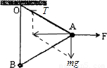 对球A受力分析,受到重力、拉力F和OA绳子的拉力T,如图