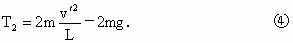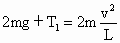 B ÇòÔÚ×îµÍµãÊܵ½ÊúÖ±ÏòϵÄÖØÁ¦2mgºÍ¸Ë¶ÔÆäÏòÉϵÄÀÁ¦T£¬¸ù¾ÝÅ£¶ÙµÚ¶þ¶¨ÂÉÓÐ