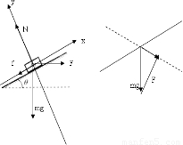 垂直斜面方向:N-mgcosθ-Fsinθ=0②