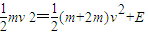 设A、B的共同速度为v,弹簧的最大势能为E,则A、B系统动量守恒:mv=(m+2m)v①