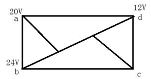 a、b、c、d是匀强电场中的四个点,它们正好是一个平行四边形的四个顶点,电场线与平行四边形所在平面平行。已知a点的电势为20v,b点的电势为24v,d点的电势为12v,如图所示。由此可知c点的电势为![]()