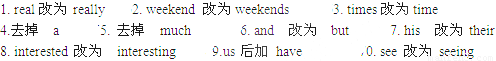 假定英语课上老师要求同桌之间交换修改作文,请你修改你同桌写的以下作文。文中共有10处错误,错误涉及一个单词的增加、删除或修改。