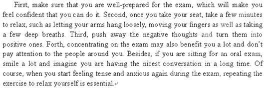 You have experienced many tests in your school life. It is a common phenomenon among students that some of you are inevitably nervous before tests. Do you have any good advice on how to overcome the anxiety? Please share your ideas with your fellow students by using an example in your life.