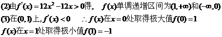 当x=0时,f(x)的极大值为1, 当x=1或-1时,f(x)的极小值为-1, - - - - - - - -
