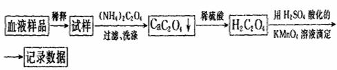 2KMnO4+5H2C2O4+3H2SO4 K2SO4+2MnSO4+10CO2↑+8H2O若血液样品为15mL,滴定生成的草酸消耗0.001mol?L―1的KMnO4溶液15.0mL,则这种血液样品中的含钙量为 ( )