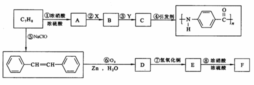 下图是以C7H8为原料合成某聚酰胺类物质(C7H5NO)n的流程图。 已知:(Ⅰ)当苯环上已经有了一个取代基时,新引进的取代基因受原取代基的影响而取代其邻、对位或间位的氢原子。使新取代基进入它的邻、对位的取代基有―CH3、―NH2等;使新取代基进入它的间位的取代基有―COOH、NO2等;