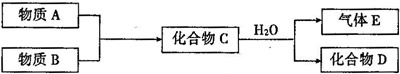 物质A与物质B之间的反应不在溶液中进行,E可能与A、B两种物质中的某种相同 请回答下列有关问题: (1)若C是离子化合物,D是一种强碱,则C物质的电子式为___________________; (2)若C与水发生复分解反应,E的水溶液呈弱酸性,D既能与强酸反应又能与强碱反应。