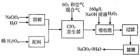 亚氯酸钠( )是一种重要的含氯消毒剂,主要用于水的消毒以及砂糖、油脂的漂白与杀菌。以下是过氧化氢法生产亚氯酸钠的工艺流程图: