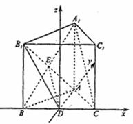 (Ⅰ)以BA所在的直线为x轴、BC所在直线为y轴、BB1所在直线为z轴,建立空间直角坐标系 。∵ 则A(1,0,0),A1(1,0,3),C1(0,1,3), D(0,0,2)