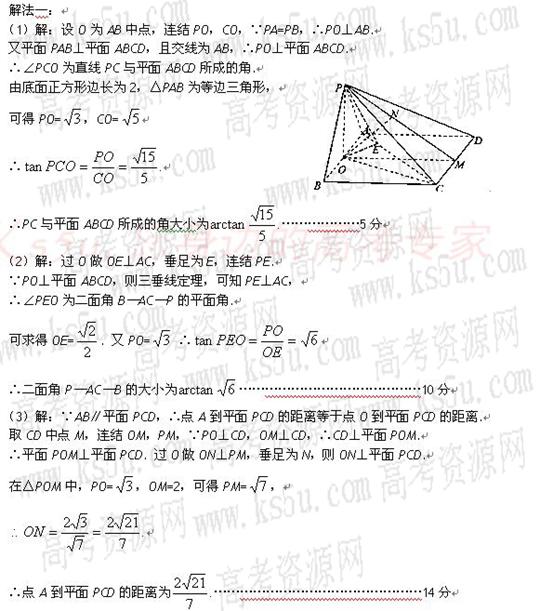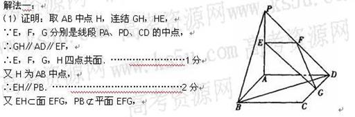 解法二: (1)同解法一 (2)如图建立空间直角坐标系,