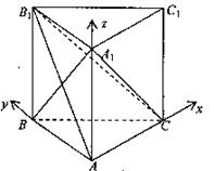 解法二: 建立空间直角坐标系D―xyz,如图, (I)证明: 连接A1B,设A1B∩AB1 = E,连接DE. 设A1A = AB = 1,