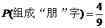 22、(本题满分8分)在两个布袋里分别装有三张卡片,每个布袋的三张卡片中2张写着“月”,1张写着“日”,其他没有区别。把两袋里的卡片都搅匀后,再闭上眼睛分别从两袋里各取出一张卡片,试求出两张卡片能组成“朋”字的概率(要求用树状图或列表法求解)。
