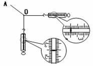 四、实验题(第16题每空格2分、作图2分;17题每空格2分;18题5分;19题8分共23分)   16.(6分)橡皮筋的一端固定在A点,另一端栓上两根细绳,每根细绳分别连着一个量程为5N、最小刻度为0.1N的弹簧测力计,沿着两个不同的方向拉弹簧测力计。当橡皮筋的活动端拉到O点时,两根细绳相互垂直,如图所示。这时弹簧测力计的读数可从图中读出。⑴由图可读得两个相互垂直的拉力的大小分别为_____N和_____N。(只须读到0.1N)⑵在答题纸的方格纸上按作
