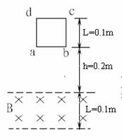 2分 线框在磁场中F=G作匀速运动,Q=mg2L=0.1×10×2×0.1J=0.2J