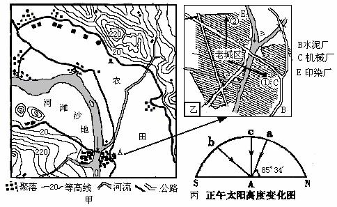工业。(3分) (4)在图乙中可看出A城有①、②两个规划发展方向,试分析之。(3分) (5)在图乙中的工厂布局不合理的是