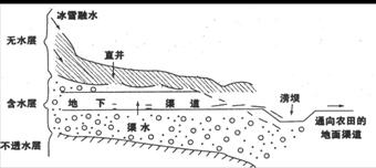 资料:新疆哈密坎儿井主要是利用天山山前盆地的特殊地理环境,沿着由北到南的地势,使渗入戈壁滩下的水从地下含水层自动流出来,坎儿井由暗渠,竖井,蓄水池、明渠等组成,竖井分布于戈壁滩上,用于开掘时出土和通风;暗渠也分布于戈壁滩上,用以输水,可减少水的蒸发:蓄水池用以储水,可减少水流冲击;出水的龙头,明渠和涝坝位于绿洲部分,以利于农田灌溉和人畜用水。 (1)坎儿井中的水,按埋藏条件分类属于_ _ 水,其主要来自