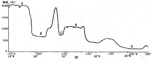 38.图甲为我国沿某线所作的地形剖面示意图,读图回答下列问题。(18分)