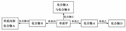16.化合物A、B、C、D各由两种元素组成,甲、乙、丙是三种单质。这些常见的化 合物与单质之间存在如下关系(已知化合物C是一种有机物),