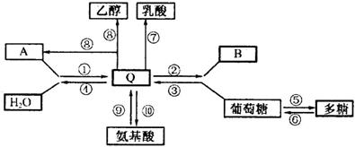 ④分析上图,你得出的实验结论是:(2分) (2)下图表示生物体内部分新陈代谢过程,Q为代谢的中间产物,据图回答: