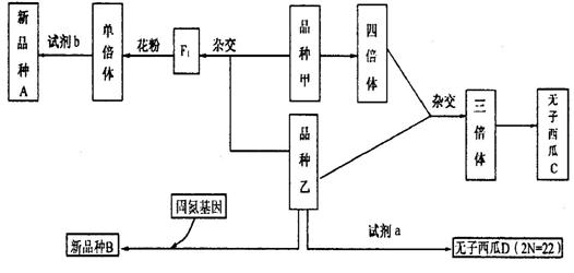 31.(22分) (1)已知普通西瓜的染色体数目为2n=22,下图是利用品种甲和品种乙培育西瓜新品种的流程。