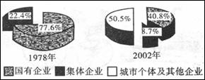 ②城市个体及其他企业成分占有较大比重 ③由单一公有制经济向公有制经济为主体的多种所有制经济转变 ④国有企业改革已经完成