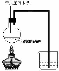 ________________________________________________________________________。 II.实验装置如下图所示: ⑴写出浓硝酸受热分解的化学方程式:__________________________________。 ⑵实验开始后木条上的火星逐渐熄灭,有的同学提出“NO2不能支持木条的燃烧”的结论。你认为这一结论是否正确?________(填“正确”或“不正确”),理由是
