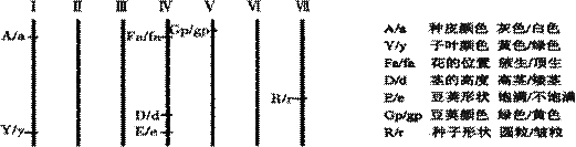 。 ②现有一只黄色果蝇,你如何判断它是隐性纯合子(yy) ?请写出方法步骤。 第一步: ; 第二步: ; 第三步:观察幼虫长成的成虫体色。 结果预测: II。(12分)下图表示孟德尔所研究的豌豆的七对性状在染色体上的分布,请回答下列问题。